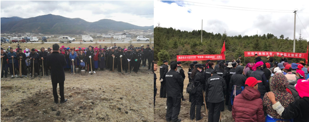 参加植树的各位同志充分发扬不怕苦、不怕累的精神,分工明确、相互协作,认真完成每一道工序。党员同志们干劲十足的劳动场面在鲜红的党旗映射下形成了一道独特的风景线。500余株高山杨柳象征着一份份绿色的希望。此次义务植树活动的开展,不但促进了机关与基层党员间党员的沟通与交流,加强了团队凝聚力,也提升了党员和广大群众的环保意识,为绿色生态建设又添新章,为建设宜居、宜游,富裕文明和谐幸福的香格里拉再添一抹新绿。