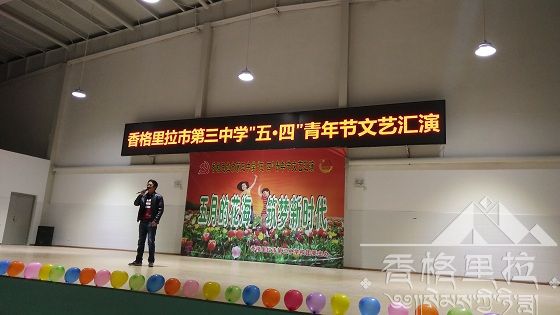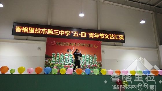 五月的迪庆高原,繁花似锦,5月4日晚,一场主题为“五月的花海,筑梦新时代”的文艺汇演在香格里拉市第三中学拉开帷幕。全校的师生员工,调离学校的老师、邀请评委、部分群众参加了由香格里拉市第三中学校团委主办的纪念五·四青年节文艺汇演活动。文艺汇演晚会紧扣主题突出了“美丽校园青春活波 追逐梦想 激扬向上”的主旋律,让青春、梦想与建设美丽校园并行,弘扬传承“五·四”爱国主义精神和全校共同团结奋进,共筑新时代青春梦,做有理想、有道德、有文化、有纪律,为实现中华民族伟大复兴的中国梦而奋斗的团员青年和谐发展之举,文艺汇演精彩纷呈。