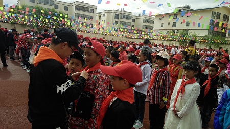 在香格里拉市城区6月1日,上午8:30分,红旗小学庆祝活动在庄严的国歌声中拉开了帷幕,整个庆祝活动分四个部分组成,一是学校领导代表全校向广大儿童和学生们表示节日问候,并寄语莘莘学子要发扬和深怀感恩之心,激扬砥砺品行之热情,脚踏实地、刻苦学习,为红旗小学的明天再写辉煌成绩。二是学校秉承以德为先,注重品行之办学宗旨,按照中国少年先锋队章程规定,遵循成熟一批吸收一批的原则,吸收了230余名新少年先锋队队员。三是表彰了一批优秀少先队员、优秀班干部、三好学生、优秀少先队(工作)辅导员等。四是组织了丰富多彩的文艺汇报演出,给家长、广大儿童和学生们展示了节日最热烈和隆重的庆祝。