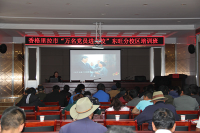 为使香格里拉市广大党员自觉用党的十九大精神和习近平新时代中国特色社会主义思想武装头脑、指导实践、推动工作,自2018年4月18日起,香格里拉市各乡镇充分发挥主阵地作用,依托香格里拉市委党校教师组成的宣讲团,以乡镇党员为对象,以党性教育为重点,举办“香格里拉市万名党员进党校”培训班。