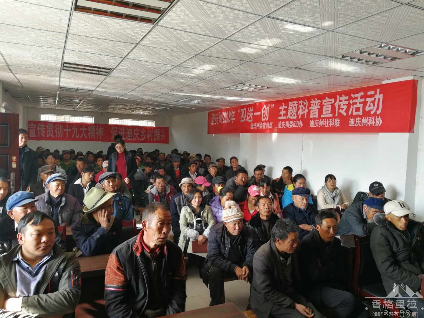 为深入贯彻落实香格里拉市“千名干部下基层 促脱贫 保稳定”活动及其相关精神,进一步巩固我市“千促”系列活动及“四送一创”主题宣传科普活动成果,结合深入贯彻落实香格里拉市委“三村七进一行动”和“迪庆精神”宣讲活动、脱贫攻坚、综治维稳工作要求,2018年3月11日至3月14日,香格里拉市科协联合香格里拉市委610办、迪庆州社科联、迪庆州科协先后深入到香格里拉市三坝乡哈巴村、虎跳峡镇街道居委会、金江镇车轴村,开展了“送十九大知识进村、送反邪教知识进村、送科普知识进村、送法律知识进村、创建平安和谐家庭”为主题的“四送一创”主题科普活动。