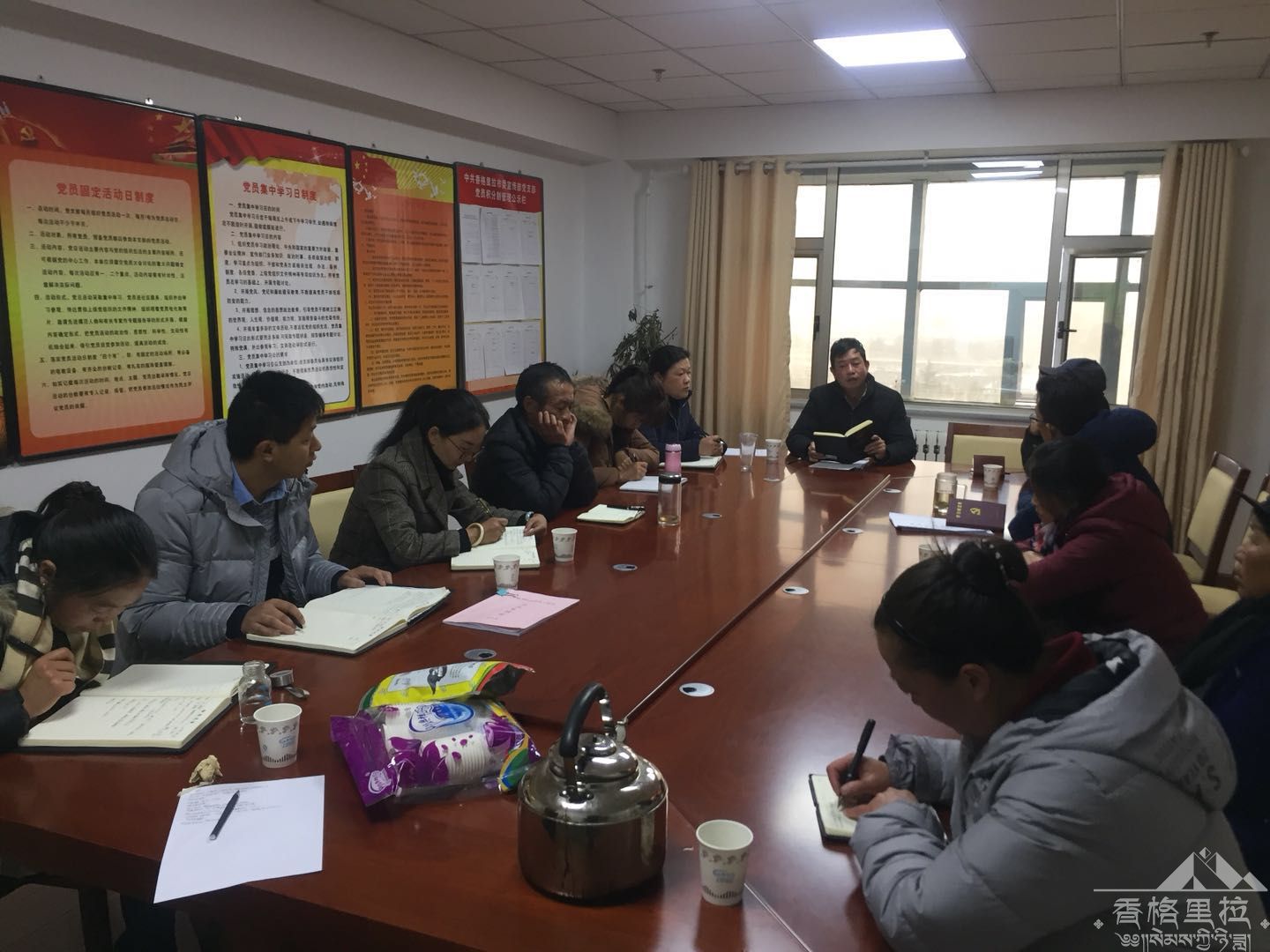 3月6日早上,香格里拉市委老干部局召开2018年老干部工作部署会议,老干部局12名干部职工(包括公益性岗位、大学生志愿者、临时工)参加了会议。扶贫工作队长和队员2名由于驻村未参加会议,会议由老干部局局长任健华同志主持。