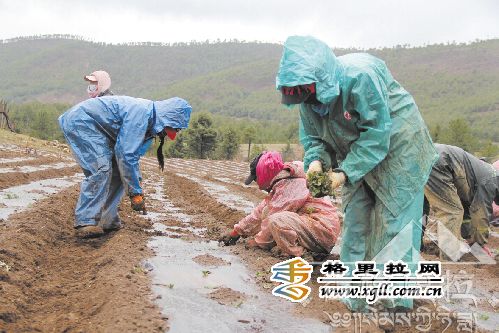 ▲ 5月初,虎跳峡镇红旗村村民抢抓节令,冒雨栽种当归。