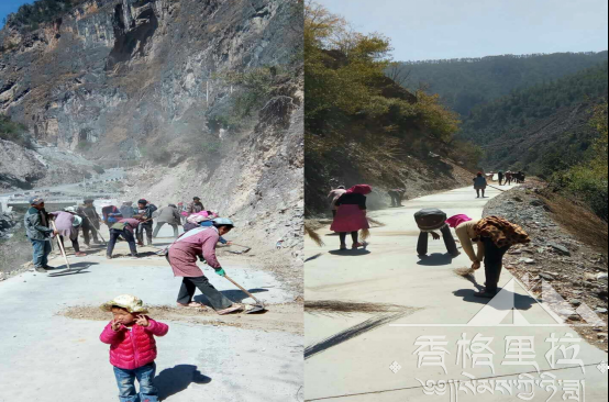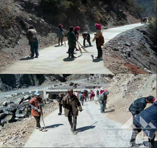 在近几年的脱贫攻坚工作中,格咱乡实现了道路硬化到村、到社,不仅为村民的出行带来了便利,同时也大大促进了村社农牧经济的发展,使村民受益。在此次环境整治工作中,重点是对村内硬化路进行了全面的清扫,实现了道路整洁干净。