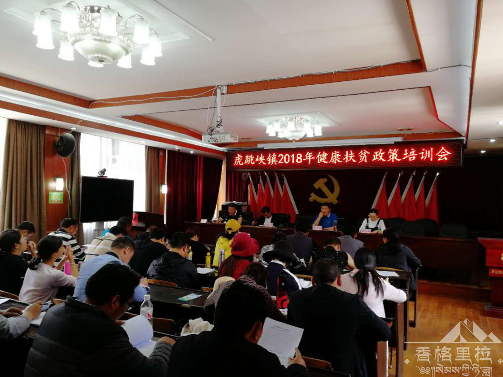 为切实加强健康扶贫政策宣传培训力度。提高我镇驻村工作队、全镇干部职工对健康扶贫政策的知晓率。2018年4月23日,下午在政府三楼大会议室召开了“虎跳峡镇2018年健康扶贫政策培训会”全镇干部职工,各站所负责人,村三委参加会议。