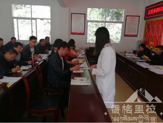 会上乡卫生院工作人员给参会人员进行了相关的健康扶贫知识、政策宣传,对健康扶贫九个确保进行详细说明,对现有14类20种大病进行简易介绍,同时再一次的对健康扶贫30天政策进行了一一学习。