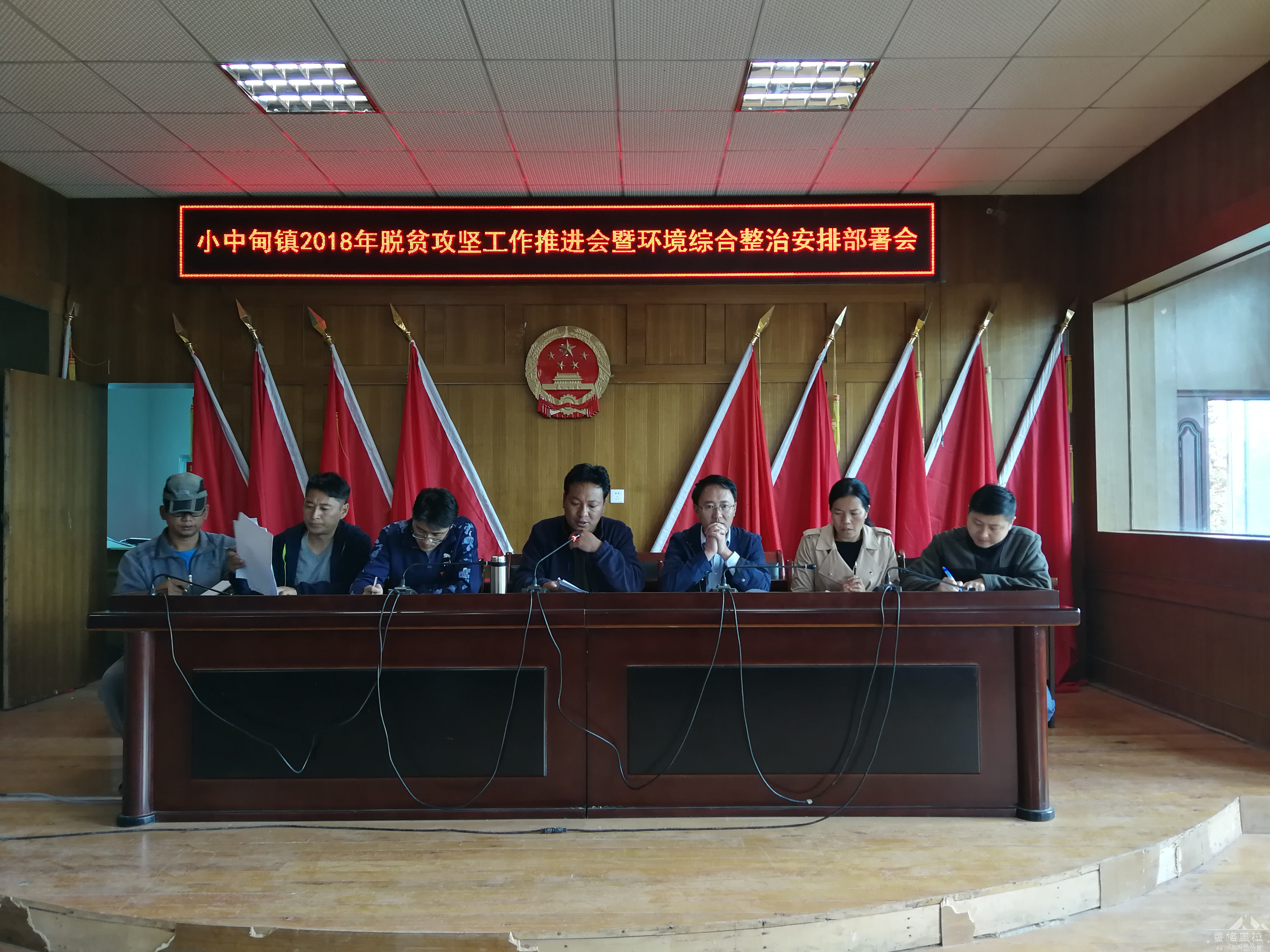 6月4日上午,在镇政府大会议室召开小中甸镇贫攻坚工作推进会暨环境综合整治安排部署会 。会议由镇党委书记扎史同志主持,全镇干部职工、各站所负责人、三村总支书记、主任、驻村工作队参会。